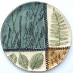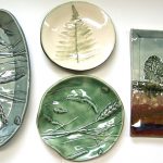 Recently I have focused on ceramics, inspired by nature. I collect flora on hikes through my neighbor’s woods. I use plant life to print and emboss directly into clay to create an impression or embossed plate. Embossed plates create a raised surface in the clay. Details are drawn back into the surface adding unique and personal texture in my hand-built process.