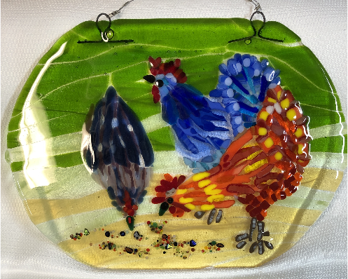 I am a fusion glass artist, one who works with glass at room temperature and then places it in a kiln for firing. I hope the uniqueness of my work and the way the sun highlights it will enchant all who visit my booth. There is something for everyone, large or small.